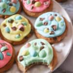 Wondering how to store your homemade Mini Egg Cookies? Keep them in an airtight container on the counter (out of the sun) for 3-4 days. You can also freeze the cookies BEFORE frosting them.